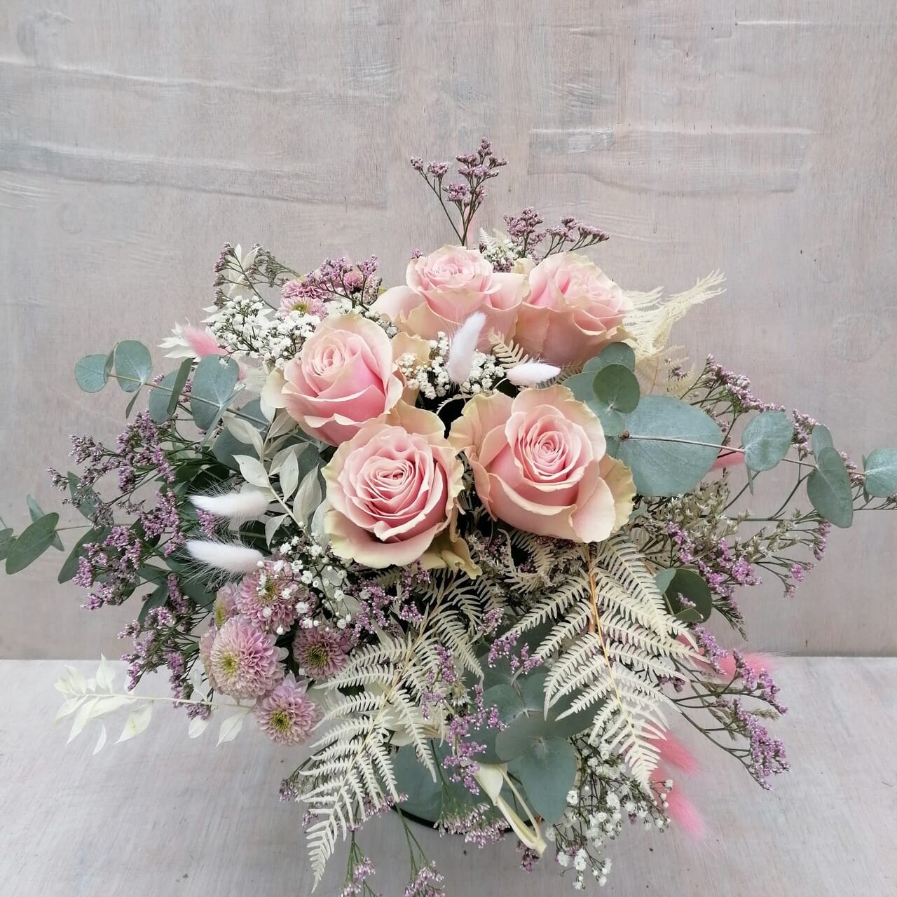 Der Blumenstrauß „Vintage“ ist ein trendiger mit Eukalyptus und pastelligfarbenen Blüten gehaltener Blumenstrauß. Der blaugraue Eukalyptus und die hellen Töne verleihen dem Strauß einen leichten Vintage-Touch.